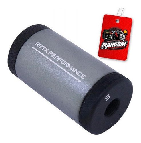 Filtro fabricado em alumínio anodizado texturizado com corpo grafite e tampas pretas.
