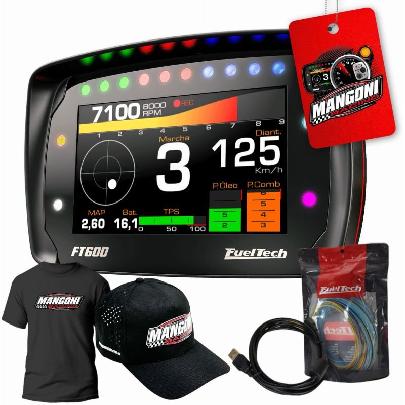 A FuelTech FT600 é a ECU com Dashboard integrado mais completa do Mercado. A FT600 é capaz de gerenciar injeção e ignição sequencial em motores de 1 a 12 cilindros (ou até 4 rotores). Com opção de mapas simplificados para facilitar os ajustes iniciais ou mapas 3D para aplicações extremamente detalhistas. Possui ajustes individuais de injeção e ignição por cilindro e funções exclusivas para facilitar a partida do veículo. Com um avançado e eficiente controle de injeção em malha fechada, a FT600 traduz toda a segurança necessária ao motor.