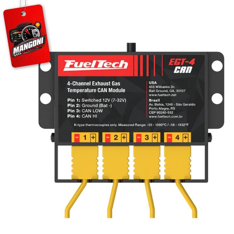 O EGT-4 CAN FuelTech é compatível com qualquer termopar tipo K (junção aterrada e não aterrada).